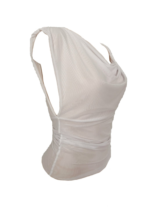 Asymmetrical Draped Double Layered Mesh Shirt - White