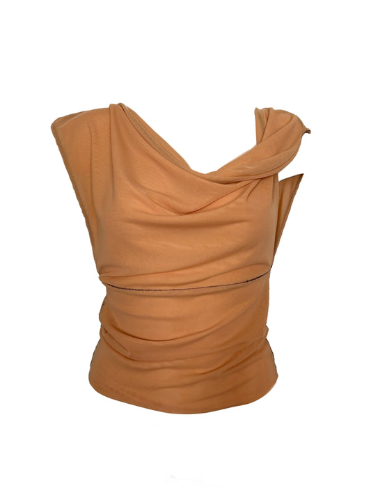 Asymmetrical Draped Double Layered Mesh Shirt - Nude